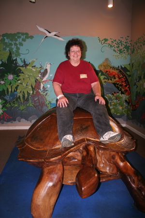 When I explained my “year long adventure,” and told him I was writing and posting about places I’ve been, he took me to the back of the shop and showed me a VERY large turtle he had commissioned for the store so people’s kids had someplace to play. Then he offered to take my photo of me on top.